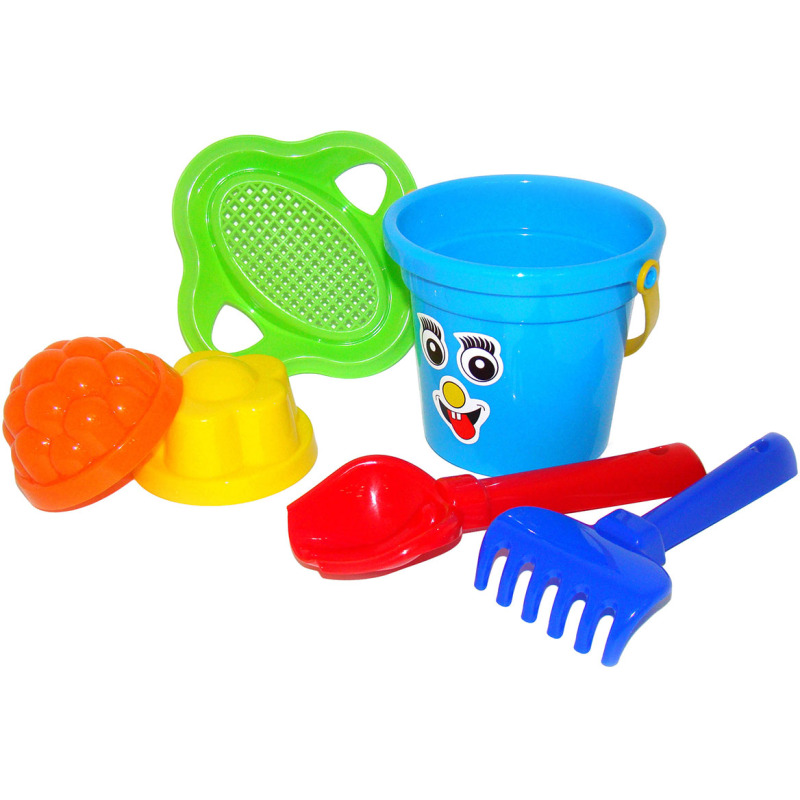 Emmerset bestaande uit een emmer, zeef, harkje, schepje en twee zandvormen. Leuk om mee te spelen in de tuin, op het strand of in de zandbak. Let op: verschillende kleuren worden door elkaar geleverd.