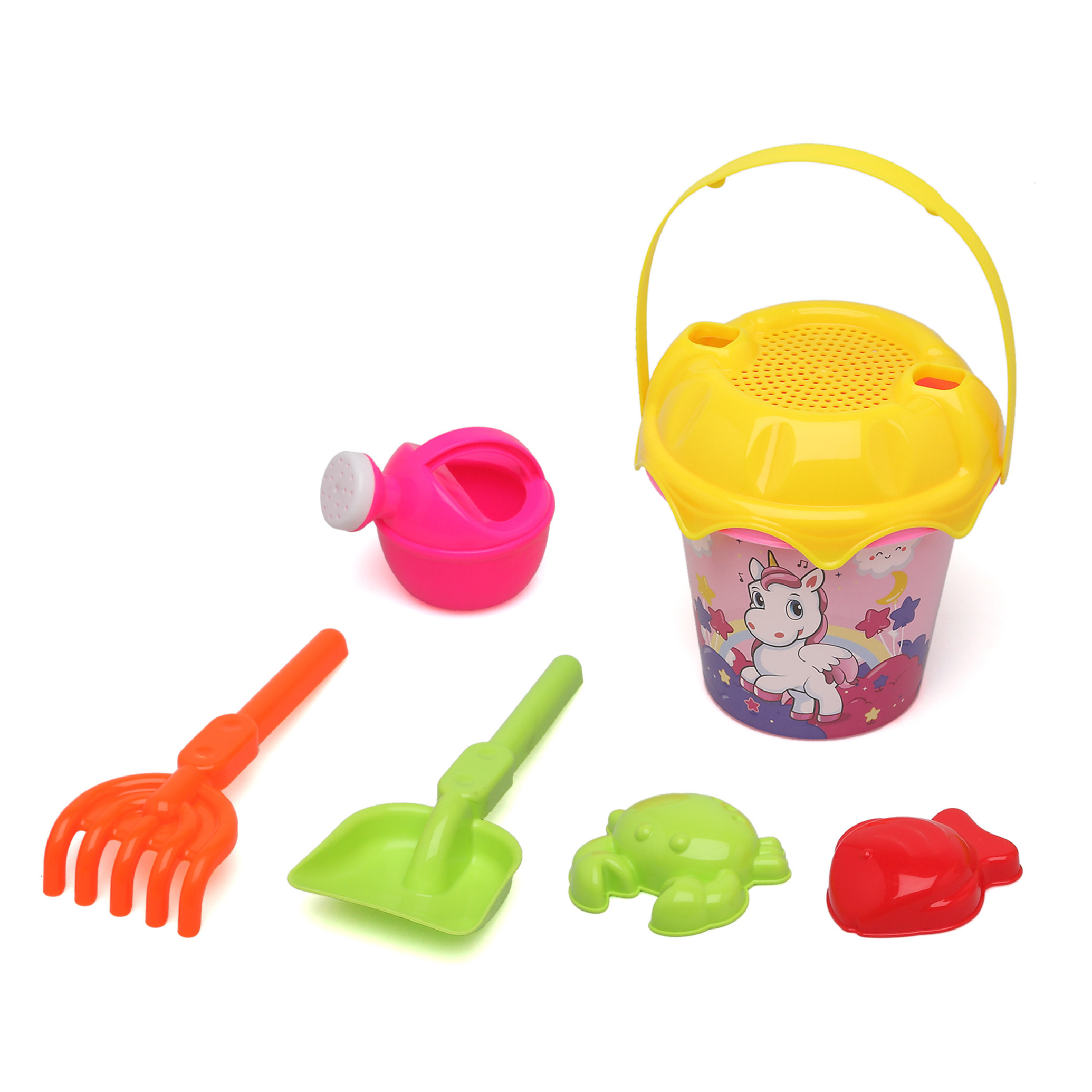 Strand/zandbak set – 3-delig – zandkasteel emmer/schep/hark